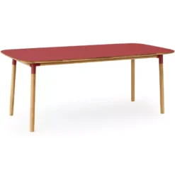De Normann Copenhagen Form tafel 200 is 200 centimeter breed, 90 centimeter diep en 74,4 centimeter hoog. Het tafelblad is gemaakt van linoleum en eikenhout. De tafelpoten hebben een diameter van 3,5 centimeter en het tafelblad is 2 centimeter dik. De witte variant is van laminaat en eikenhout. De tafelpoten zijn eveneens van eikenhout. Maak het linoleum schoon met de daarvoor bedoelde schoonmaakmiddelen. De tafel is verkrijgbaar in de volgende kleuren: wit/eiken, grijs/eiken, zwart/eiken, blauw/eiken, groen/eiken of rood/eiken. In dezelfde serie is ook een kleine tafel leverbaar.