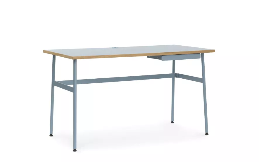 Het Journal bureau van Normann Copenhagen is verkrijgbaar in 4 stijlvolle kleuren: wit, zwart, grijs en lichtblauw. Het gelamineerde bureaublad heeft een lengte van 130 centimeter en een breedte van 65 centimeter. De poten en het laatje zijn van staal met een poedercoat. Dit bureau heeft een hoogte van 74 centimeter.