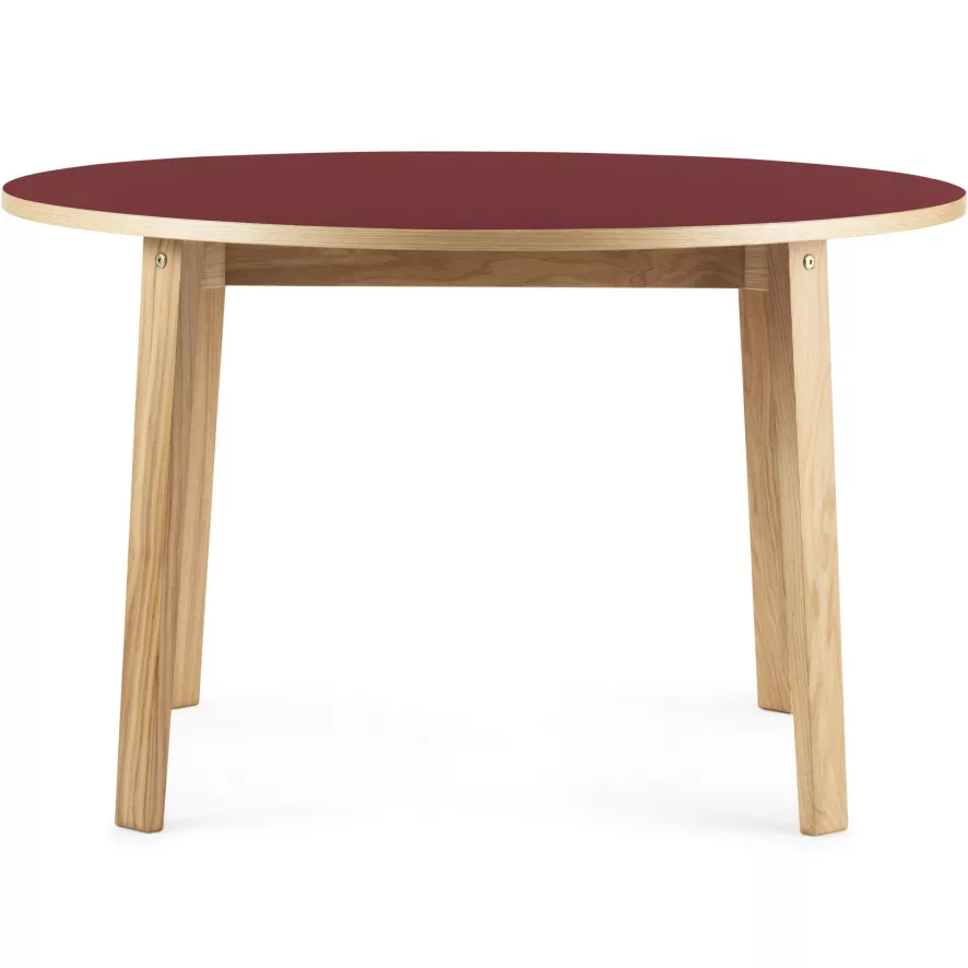 De Slice Linoleum 120 van Normann Copenhagen heeft een hoogte van 74 centimeter en een diameter van 120 centimeter. Het tafelblad is gemaakt van linoleum op een spaanplaat met randen van eikenfineer. Voor het linoleum kun je kiezen uit de kleuren Creme, Grey, Black en Burgundy. Het blad wordt ondersteund door poten gemaakt van eikenhout.