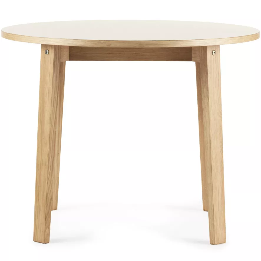 De Slice Linoleum 95 van Normann Copenhagen heeft een hoogte van 74 centimeter en een diameter van 95 centimeter. Het tafelblad is gemaakt van linoleum op een spaanplaat met randen van eikenfineer. Voor het linoleum kun je kiezen uit de kleuren Creme, Grey, Black en Burgundy. Het blad wordt ondersteund door poten gemaakt van eikenhout.