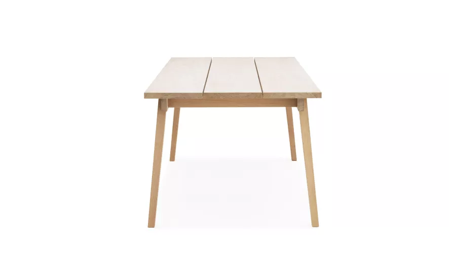 De Slice tafel 250×90 van Normann Copenhagen heeft een lengte van 250 centimeter, een diepte van 90 centimeter en een hoogte van 74 centimeter. Het tafelblad is gemaakt van eiken fineer en de poten van de tafel zijn gemaakt van massief eiken. Het eiken wat gebruikt wordt voor de tafel is allemaal met zeep behandeld. De tafel kan worden schoongemaakt met een vochtige doek met warm water.